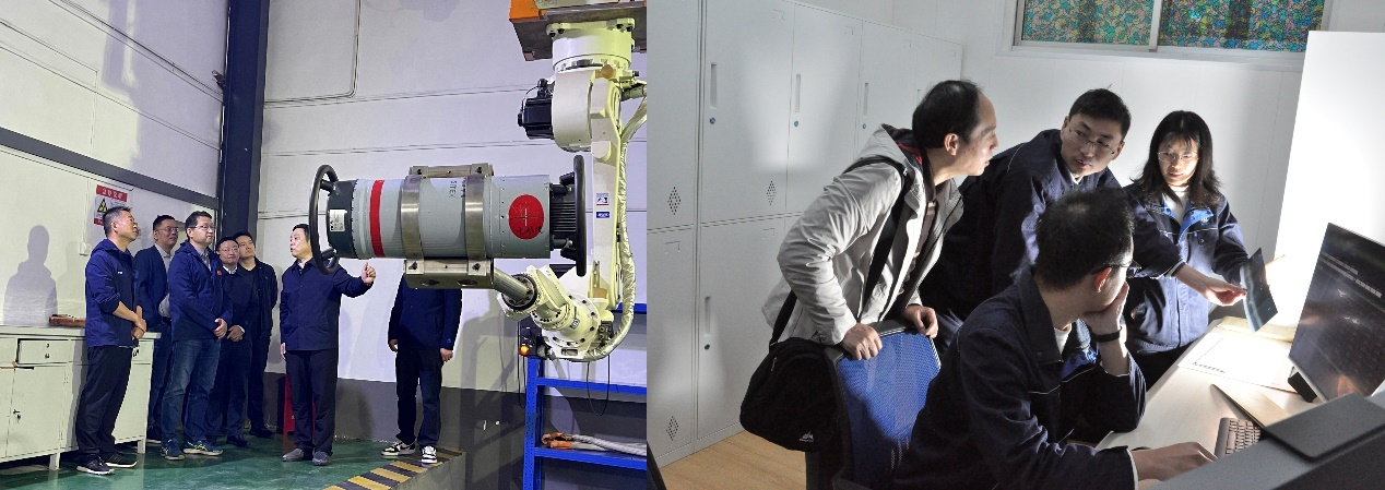 張旭海一行先后到化機分公司劉毅勇技能大師創新工作室、無損檢測工段和晨光藝術工程生產制造車間進行了實地調研,并與劉毅勇技能大師創新工作室帶頭人及團隊成員進行了深入交流,詳細了解工作室的制度建設、日常運行、示范引領作用發揮、人才培養、創新成果等情況,認真聽取了化機分公司近期研發的“AEROSUN EagleEye”智能識別軟件系統的開發進展。
