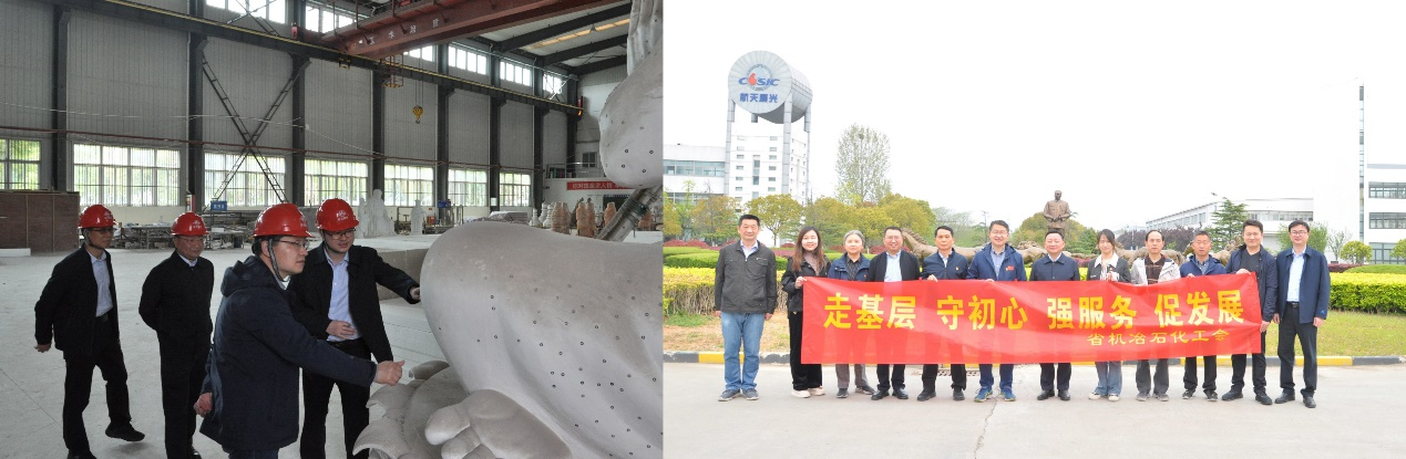 近日,江蘇省總工會機冶石化工會工作委員會主任張旭海一行到公司調研。公司黨委副書記、副總經理孫建航,工會主席魏志剛、化機分公司、晨光藝術工程相關負責人陪同調研。