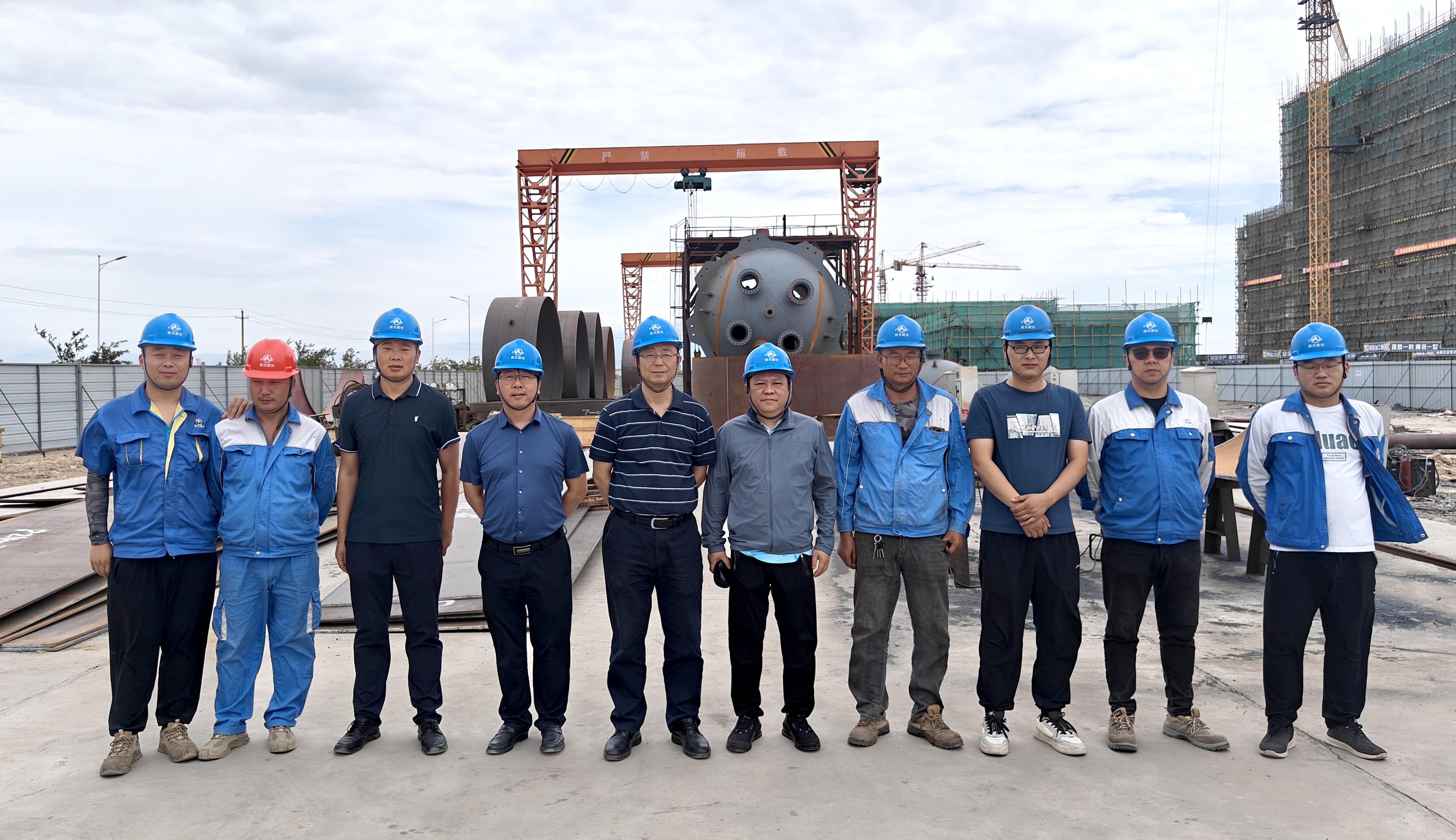 近日,航天晨光黨委委員、副總經理王鐳深入新疆中能綠源哈密給料罐項目現場開展安全生產檢查、調研項目建設情況,同時對高溫下搶生產、促發展的一線職工送上關心與慰問,化機分公司相關領導陪同。