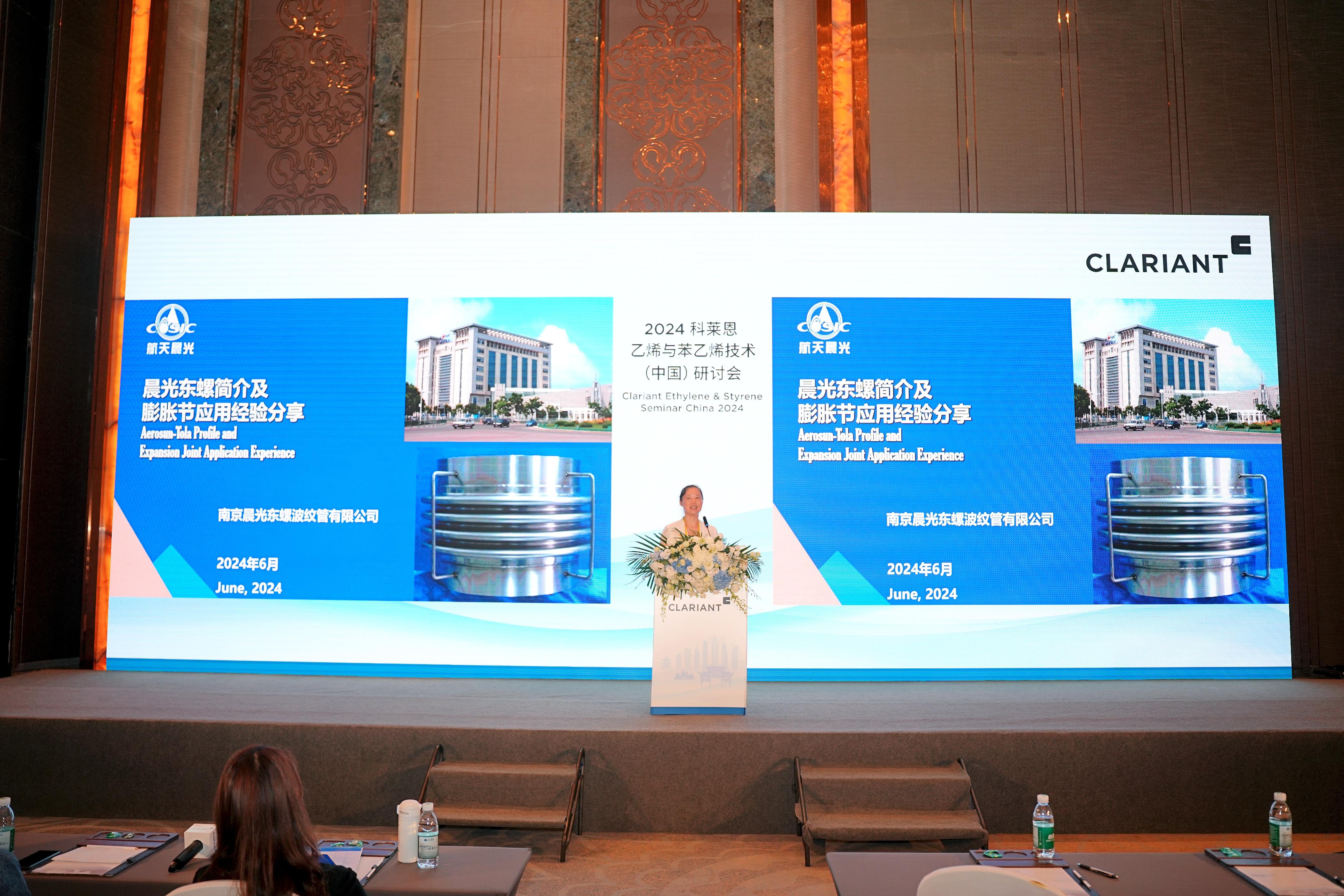 本次研討會吸引了來自全球的乙烯和苯乙烯行業的專家學者及企業代表,共同探討行業未來發展的趨勢以及催化劑、工藝和設備技術的創新成果。會議期間,特別設置了關于乙烯和苯乙烯生產價值鏈的專題討論環節,促進了業界內的知識共享和技術交流。研討會上,與會者聽取了專利商貝吉爾(Badger)、瑞華在苯乙烯技術上的新動態;廣東石化、淄博峻辰等企業分享了科萊恩催化劑在苯乙烯裝置中的實際應用。牛玉華在會上發表題為“晨光東螺簡介及膨脹節應用經驗分享”的精彩演講,其內容得到了在場客戶的高度評價。