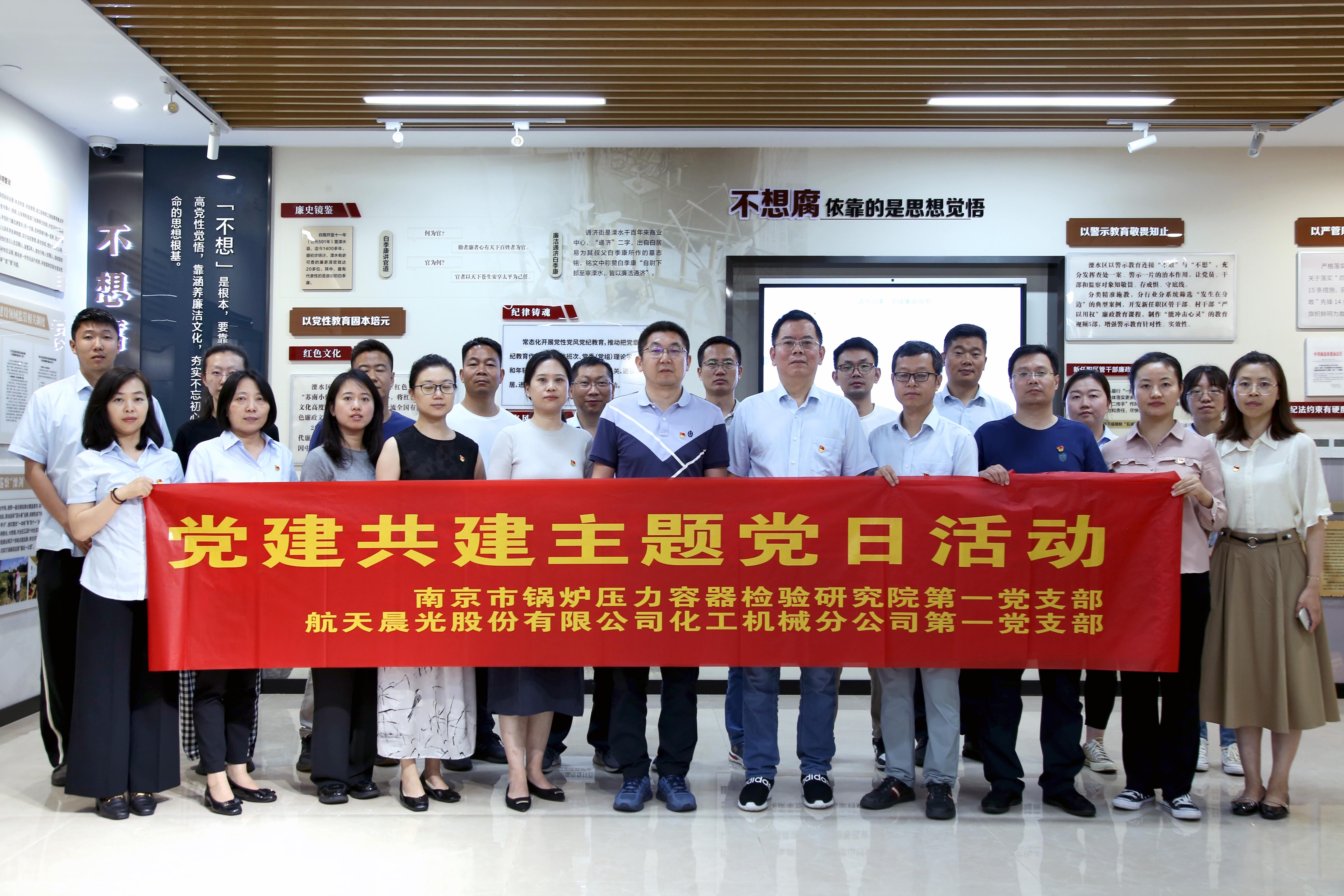 近日,航天晨光化機(jī)分公司第一黨支部聯(lián)合南京市鍋爐壓力容器檢驗(yàn)研究院第一黨支部開(kāi)展“明黨紀(jì)、倡廉潔、促發(fā)展”黨建共建活動(dòng)。分公司黨委書記、副總經(jīng)理儲(chǔ)志軍,黨委副書記、總經(jīng)理毛長(zhǎng)鈞,黨委委員、副總經(jīng)理張少勇,第一黨支部全體委員,黨委辦公室人員及部分黨員代表參加了本次活動(dòng)。