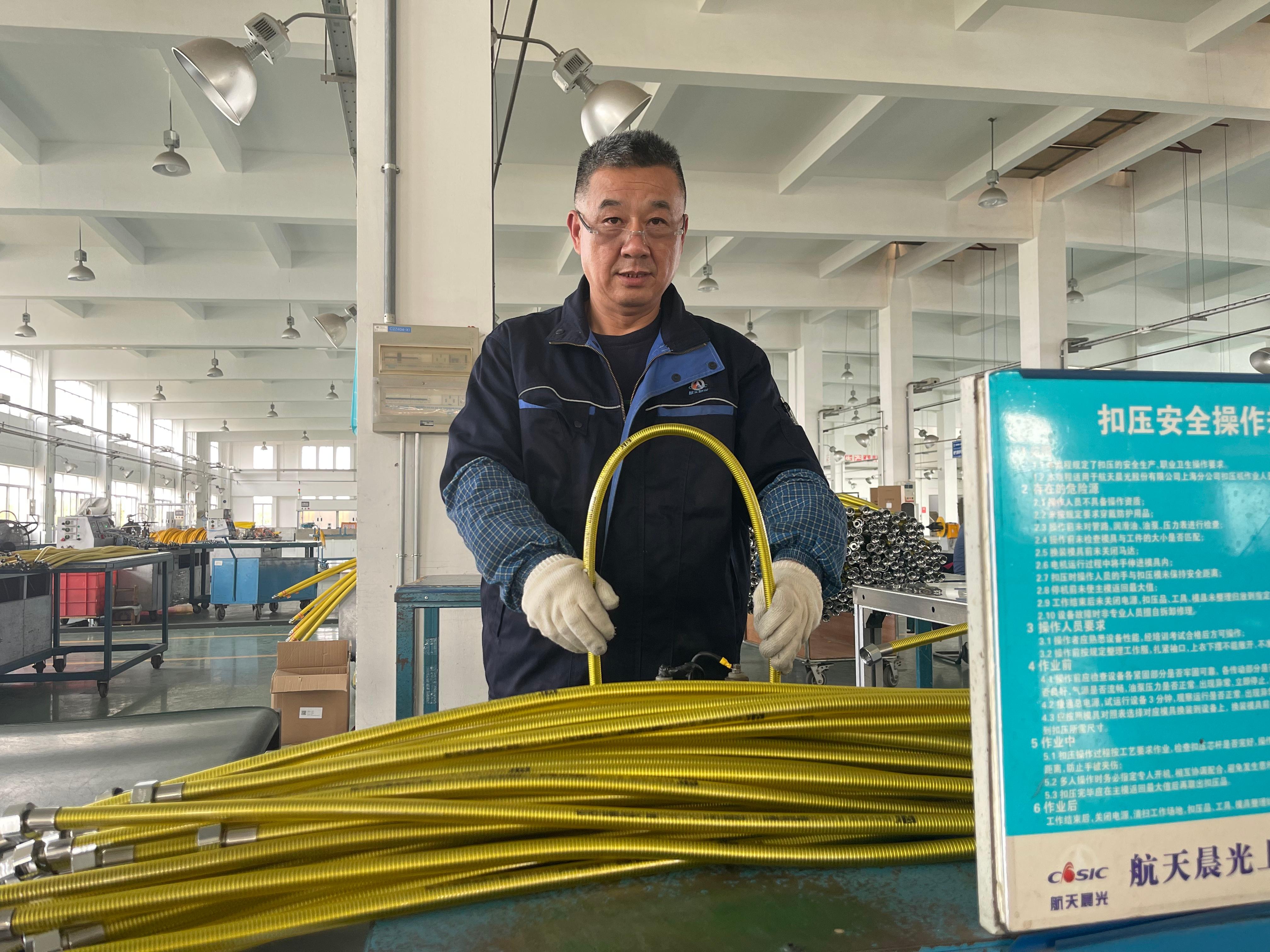 走進上海分公司的燃氣管工段,在一排排快速運轉的成型設備前,在鱗次櫛比的燃氣管包裝工序中,總是有一個始終忙碌而又堅定執著的身影。那就是張衛東,一位在生產一線默默耕耘了三十多年的老工匠。盡管歲月在他臉上刻下了深深的皺紋,雙手早已布滿了粗糙的老繭,但他的眼神中卻始終閃爍著對航天的熱愛、對晨光的深情。